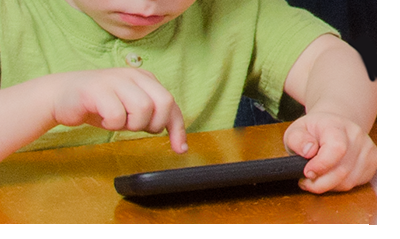 a child at a computer and putting on a game that